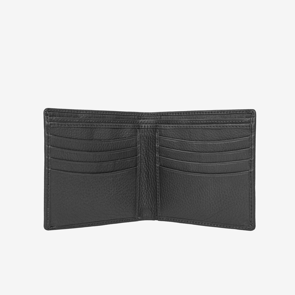 În interior are 2 compartimente pentru bancnote, 8 buzunare pentru carduri și 2 buzunare de dimensiune mare (pentru carte identitate etc.).
